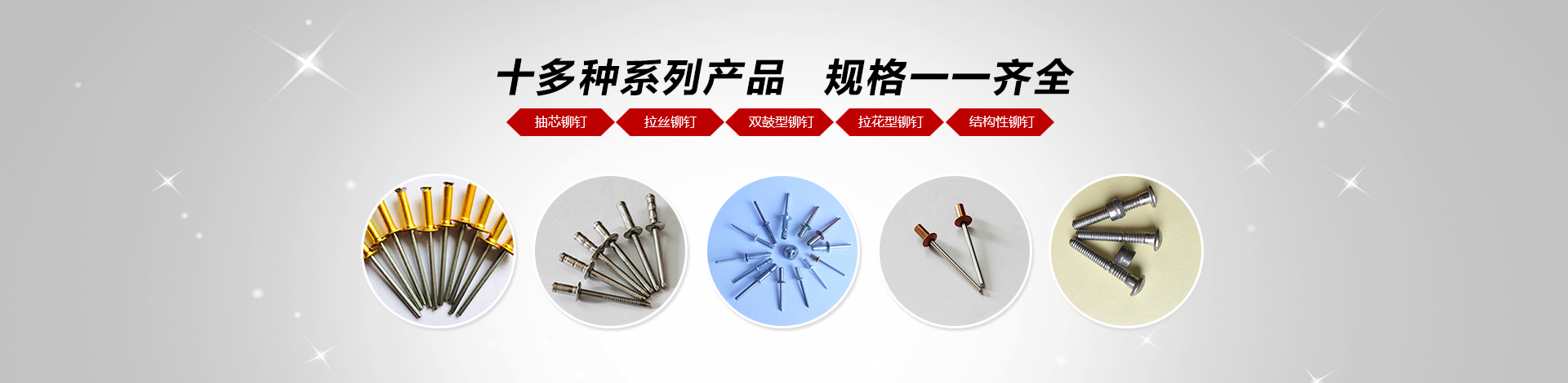 開口型抽芯鉚釘(拉釘)| 封閉型抽芯鉚釘| 不銹鋼抽芯鉚釘| 雙面沉頭抽空鉚釘| 拉絲鉚釘(口杯鉚釘)| 拉花鉚釘 酒盒鉚釘| 尼龍塑膠鉚釘| 結構型高強度鉚釘 更多>>